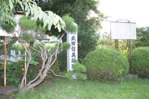 一部に土塁の跡が見られるほかは、はっきりとした遺構はわかりません。信義は逸見清光の子で、韮崎の武田の地に居を構えて武田氏の初代になったといわれますが、これより早く茨城県の武田の地で武田姓を名乗っていた可能性もあり、謎をよんでいます。近くの武田八幡宮や願成寺と合わせ、甲斐源氏の勃興期の歴史を感じ取ることができる遺跡です。 |
