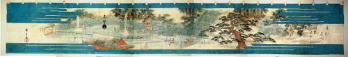 | ■初代歌川広重筆「甲府道祖神祭幕絵 東都名所 目黒不動之瀧」 |